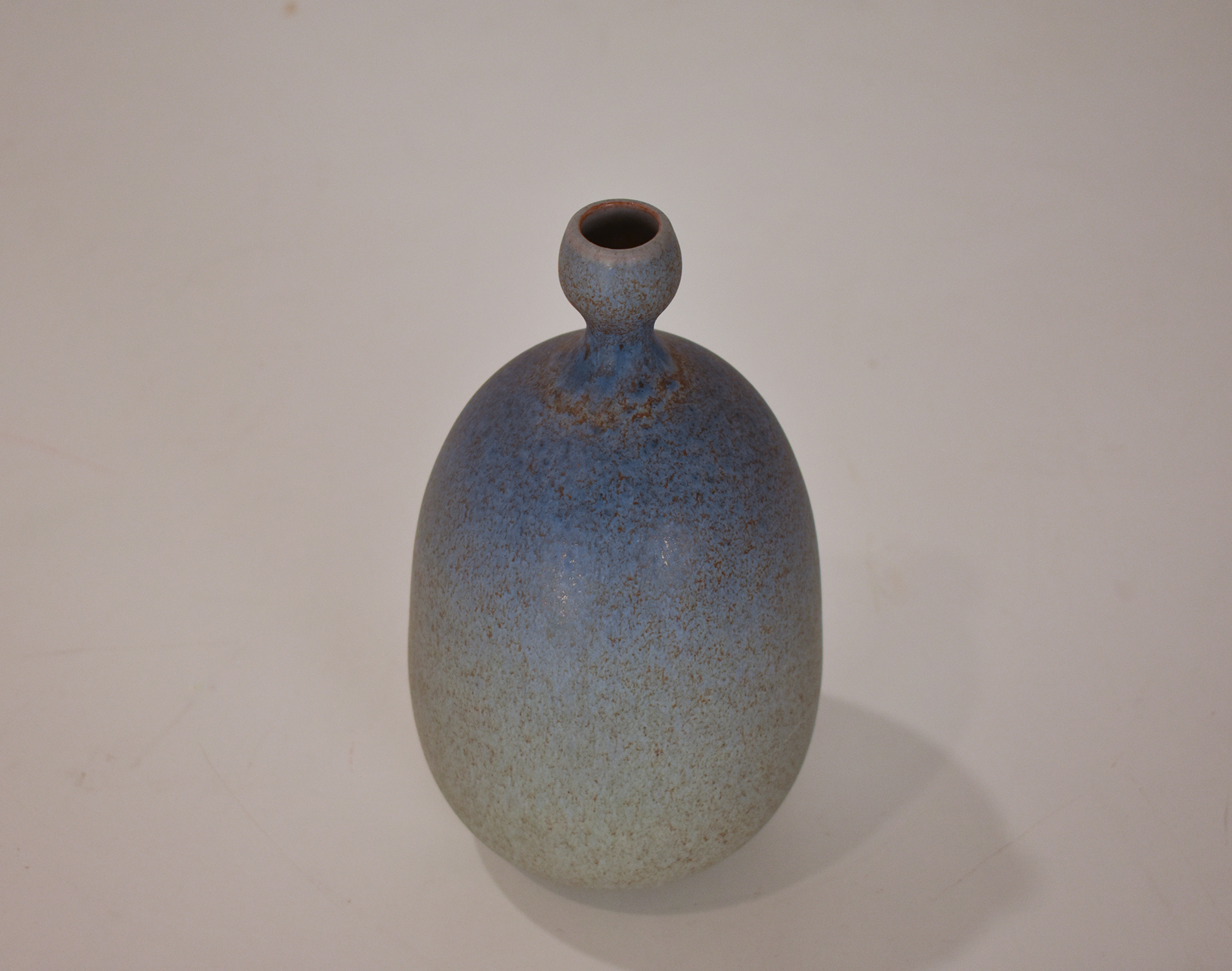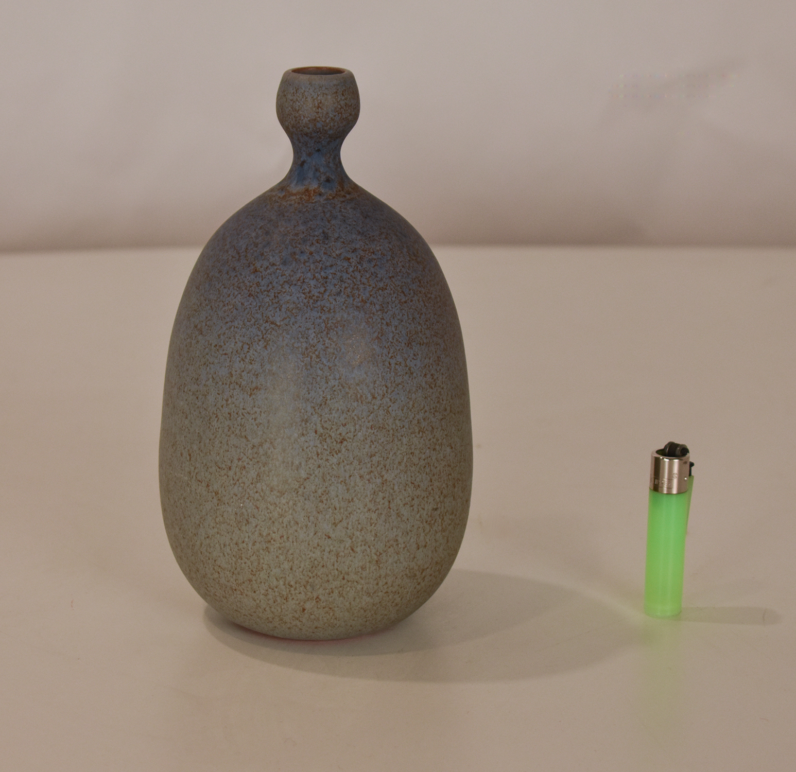 La cerámica de Joan Carrillo en tonos azules, con una altura de 21 cm y un diámetro de 11 cm, es una obra de excepcional belleza y detalle. La pieza está firmada por el artista, lo que añade valor adicional a su autenticidad.